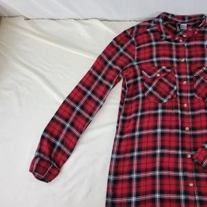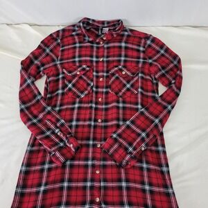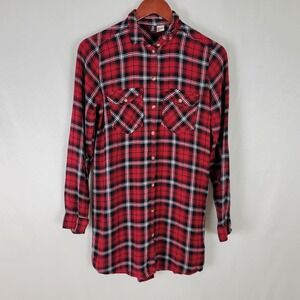 Divided Womens Shirt Size 4 Top Red Plaid Long Sleeve Collared Button Down