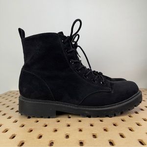 Divided Women’s Work Boot Black Faux Suede Lace Up Lug Sole Size 8.5 US