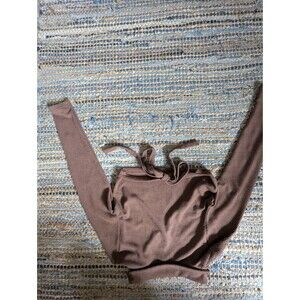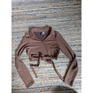 Divided Wrap Crop Top Chocolate Brown L/S Women's M Vneck Ribbed Gremlincore