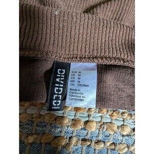 This is a women's Divided wrap crop top in a chocolate brown color, featuring a V-neck neckline and long sleeves. It is made of a tight-knit ribbed knit fabric, giving it a classic fit. The top is designed with a solid color and a pullover style, suitable for a Gremlincore fashion aesthetic. This size M top is great for casual wear and can be styled for various occasions.