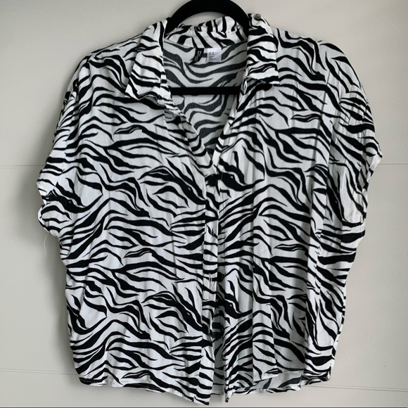 Divided Zebra Print Button Up