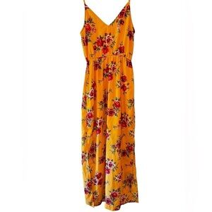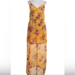 Long dress in woven fabric with a V-neck at front and back. Narrow shoulder straps, elasticized seam at waist, and straight-cut, softly draped skirt with high slits at sides. Partly lined