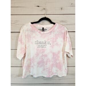 Divided by H&M Ariana Grande Womens Pink White Tie Dye Crew Neck Crop Top Small
