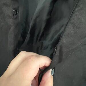 Divided by H&M Black Cropped Blazer Jacket in women's Size 12. Long Sleeves. One hook and eye type Front Closure. Jacket is in good used condition with no flaws or stains other than some minor wash wear. Pit to pit measures approx 18.75 in across & length from top of front shoulder to bottom hem measures approx 21 in. Slightly cropped style. Business casual. Office wear. Work wear. Career. Please see close-up pictures for condition details. Back has a peplum hem.