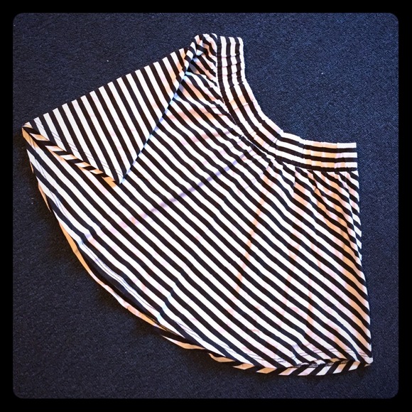 Black & White striped skirt. Size 8, 100% cotton. Elastic waist band!
