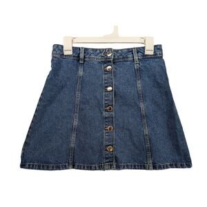 Divided by H&M Denim Mini Skirt Size 6 Blue Medium Wash Button Front Casual Work