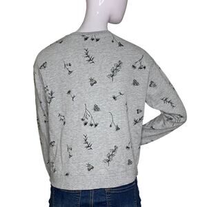 Divided by H&M Floral & Butterfly Print Gray/Black Long Sleeve Crew Neck Size S