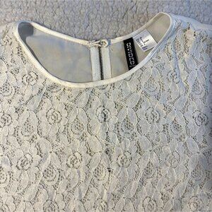 H&M, Divided, Off White, Floral, Lace, Sheer, Zipper, blouse, top
