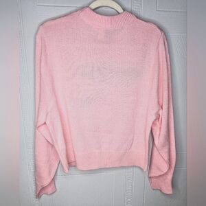 Pristine condition medium size light pink acrylic tight knit cropped pull over sweater with oversized baloon sleeves, Pink Panther theme. Divised bu H&M