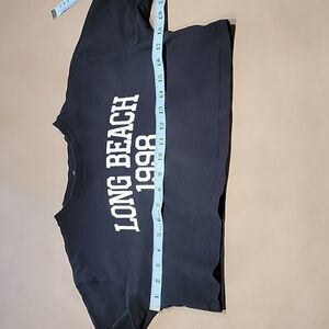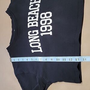 Divided by H&M Size S Black Cropped T-Shirt "Long Beach 1998" Vinyl Graphic. Excellent Used Condition, No Holes, Rips, Stains or Snags. Please refer to measurements in photos to ensure proper fit.