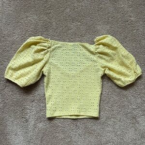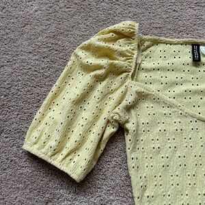 Divided by H&M Yellow Puff Sleeve Eyelet Crop Top