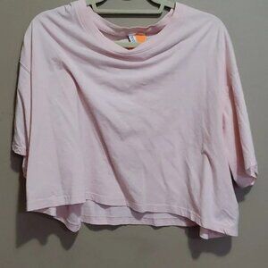 This stylish pink cropped tee is perfect for any casual occasion. The soft material and comfortable fit make it a must-have for your wardrobe. The cropped length adds a trendy touch, making it easy to pair with high-waisted jeans, skirts, or shorts. Don't miss out on this versatile and affordable piece!
