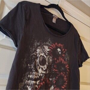 Divided faded black skull long t shirt M