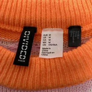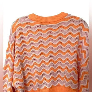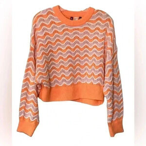 Divided fan / scallop Eyelets knit Cropped Sweater Size Medium orange/pink/white
