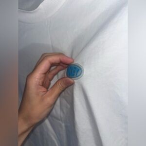 Divided size small oversized fit Disney Mickey Mouse blue and white graphic
