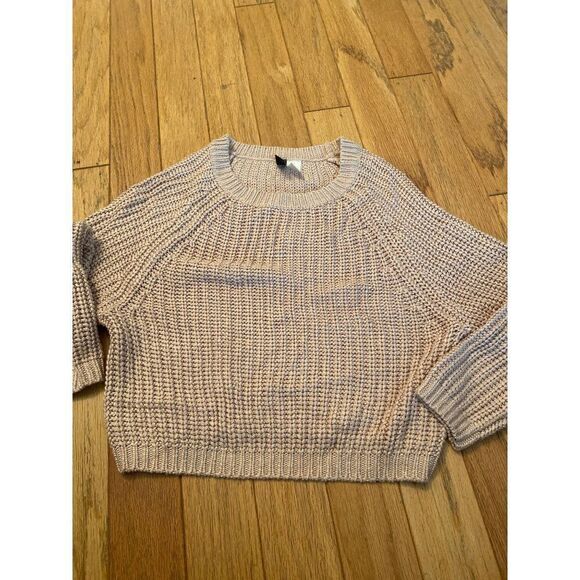 Divided, women's pale pink cropped knit crochet pullover sweater size XS