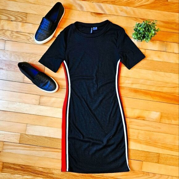 black colored white and red blocking on sides short sleeves crew neck style Form Fitting short length no stains no tears size 6 smoke free home