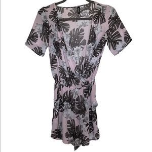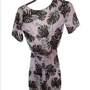 Divided H & M short all, light weight, floral, size 2, flowy, pocket on each side, elastic cinch waist, leaf and flower print, approximate measurements: length 28 inches, pit to pit 16 inches without stretching, smoke-free home.