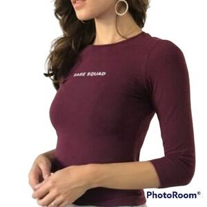 Divided H&M Burgundy Red Babe Squad Graphic 3/4 Sleeve Cropped Tee Women's Small