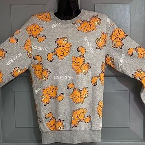 Divided H&M Garfield Print Gray Sweatshirt Crew Neck Banded Sz XS