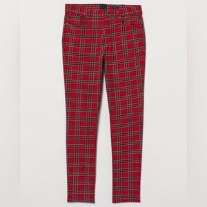 🔹️Divided H&M Red Plaid "Red Concept" Skinny Pants Size 10/30