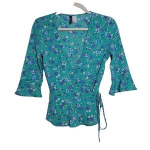 Divided H&M Wrap Ruffle Sleeve Peplum Tie Waist Floral Blouse 6