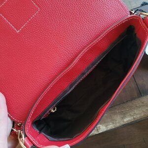 This elegant red leather shoulder bag features a striking gold snake accent, offering both style and functionality. Its adjustable strap ensures a comfortable fit, while the spacious interior allows for efficient organization. The bag's robust construction and timeless design cater to the discerning fashion enthusiast.