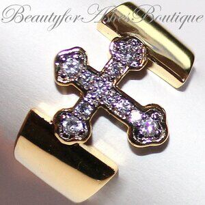 Divine Christian Open Band Cz Clear Cubic Zirconia Cross Goldrtone Brass Ring
