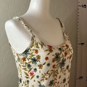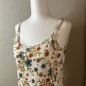 Divine Diva floral print sleeveless top adjustable straps blues & greens SZ S