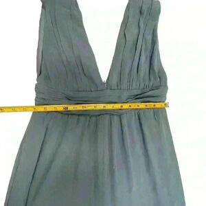 Shoulders stitched (not noticeable) to reduce plunge. Stitching can easily be removed to restore full plunge if desired.