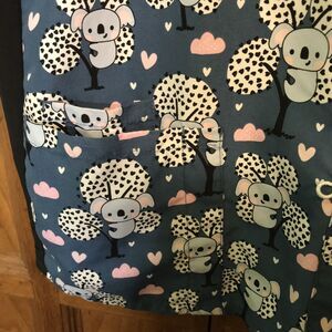 Divine Scrubs by JDM Uniforms, Women's size Medium, Blue & Pink, Koala Bear & Hearts Scrubs. 3 Pockets, Pen & Key Loop, V-Neck Top with Black Side Panels. Nurse, Vet, Dental, Medical. So CUTE!