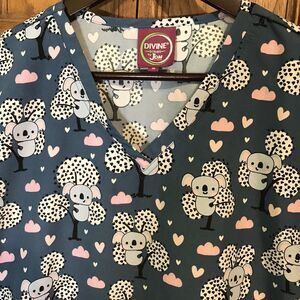 Divine Scrubs by JDM Uniforms Medium Blue Koala Bear Scrubs Pockets V-Neck Top