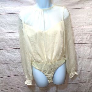 Divine Style Ivory Sheer Long Sleeve Bodysuit Size Medium