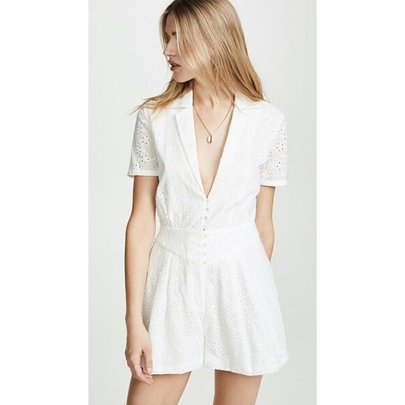 Divine Heritage Collared Button Up Pleated Romper NWT Women's Size XS White $365. Condition is New with tags. Shipped with USPS