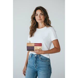This versatile crossbody wallet combines functionality with style. Its vibrant color blocks and durable leather construction make it a sophisticated choice for organizing essentials. With ample storage for cards and coins, and a bi-fold design, it offers convenience and elegance for everyday use.