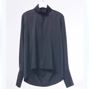 Divka Sapphire Cool Twill Pleated Draped Back Button Down in Black M NWT