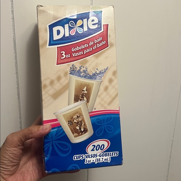 Dixie 3oz bath cups featuring a cute animal design. Perfect for bathroom use. Top of box is taped shut so some might be gone but it feels pretty full. (Sep25)