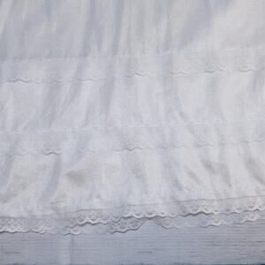 Description : Women’s half slip. Label says “fashion long”. Elastic waist. Bottom hem has 3 tiers of lace trim.
