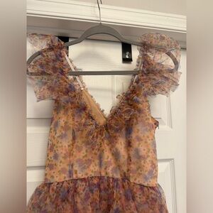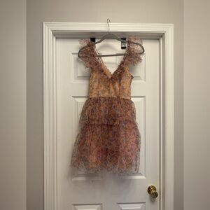 Dixie DX Collection Pink Floral Tiered Tulle Dress Size S Made In Italy NWT