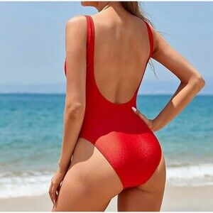 Dixperfect Retro 80s/90s Inspired High Cut Low Back One Piece Swimsuit. Size L. Red. New with tags.