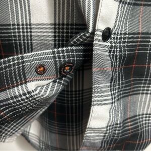 Great preloved condition Dixxon ARTHUR Men’s 3X Plaid Long Sleeve Snap Button Up Halloween Fall Flannel Shirt. Black,white, orange colors.