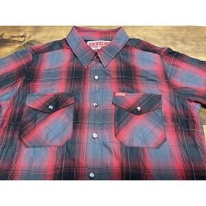 The Dixxon Blood Sweat & Tears Pearl Snap Short Sleeve Bamboo Shirt is a stylish and comfortable women's top in size medium. Made from a bamboo blend fabric, this multicolor plaid shirt features a classic collared neckline with button closure and fitted sleeves. Perfect for casual occasions, this non-iron shirt also includes convenient pockets and is adorned with subtle logo accents. With a classic fit and basic style, this button-up shirt from the brand Dixxon Flannel is a versatile addition to any woman's wardrobe.pre owned good condition we ship fast measurements are in the pictures