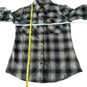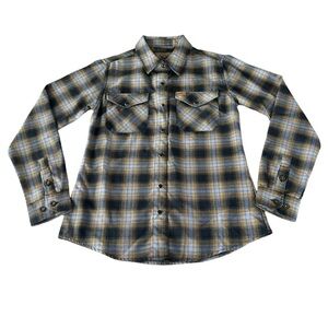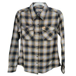 Dixxon Brownells Big Iron Plaid Flannel Pearl Snap Shirt Women’s Medium EUC