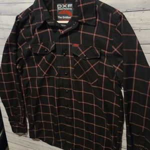 Dixxon DXF Flannel Gridlock Long Sleeve Shirt Snap Button Black Red Mens Sz M. Great pre-owned condition! No rips, holes or tears. Please check out all pictures provided for measurements and condition, more pictures on request. Shipping through USPS Priority Mail.