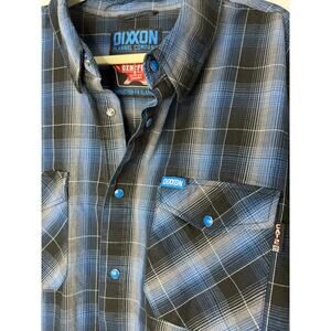 Tough, dependable, and built for performance — this Dixxon Combustion FR Flannel combines classic Dixxon style with protective functionality. Features a durable flame-resistant (FR) cotton weave rated CAT 2 / NFPA 2112 compliant, snap-button front, dual chest pockets with button flaps, and a soft yet sturdy feel. Signature blue-and-black plaid pattern with matching blue snaps and embroidered Dixxon logo.