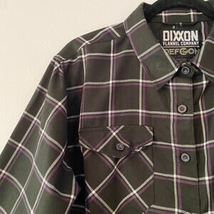 Get ready to rev up your style with this awesome Dixxon Flannel Company Defcon Powersports button-down shirt! This flannel is in excellent condition and features a bold black and purple color scheme.