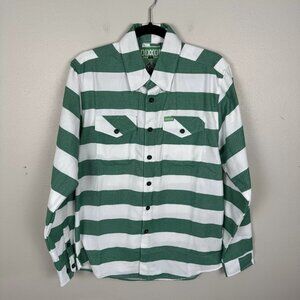 Dixxon Flannel Mens Size S Green White Stripe Long Sleeve Button Down Shirt