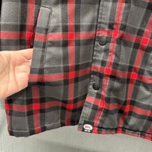 Dixxon Flannel Shacket Mens Medium BELL COLLAB Quilted Liner Full Zip + Snap Red Gray Black Plaid Shirt Jacket + Pockets