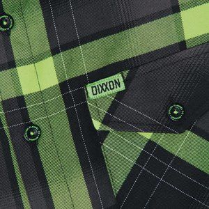 Green and black Dixxon brand tag on the left chest pocket