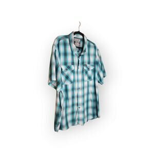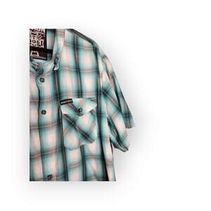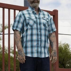 Dixxon Men’s Dog Town Blue Plaid Short Sleeve Flannel Shirt 3X Shop Style Casual